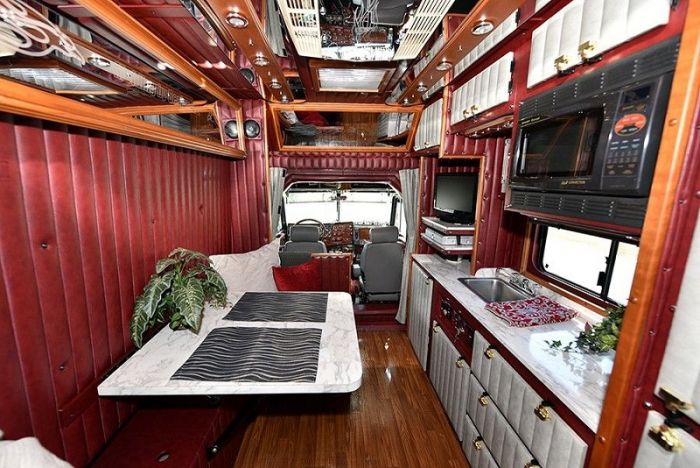 Это открывает для дальнобойщиков невиданный простор в вопросе создания целых «дворцов на колесах». Мечта любого властелина баранки США – это покупка тягача со «слипером». В переводе на нормальный русский язык – это жилой модуль, который устанавливается за кабиной. А так как длина седельных тягачей в США не ограничена, американцы имеют возможность брать машины с очень длинной колесной базой и ставить на нее здоровенные коробки, способные полностью заменить небольшую квартиру.