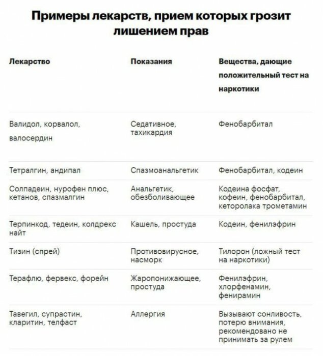 По его словам, лекарства, которые могут привести к лишению прав, не всегда связаны с нервной системой или квалифицируются как успокоительные и седативные. Многие препараты принимают во время вируса, головной или зубной боли, проблем с давлением, кашля или аллергии. Например, кеторолака трометамине препараты показывают положительный тест на морфины.