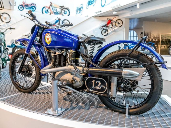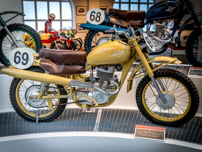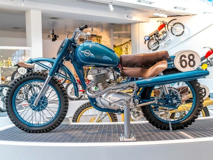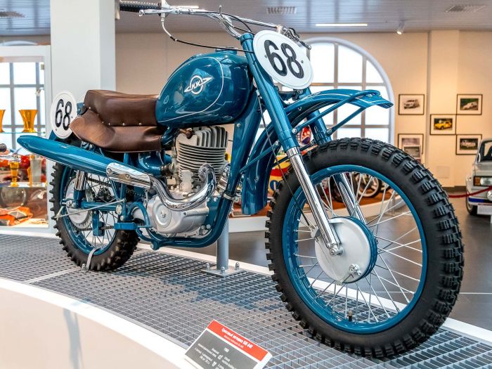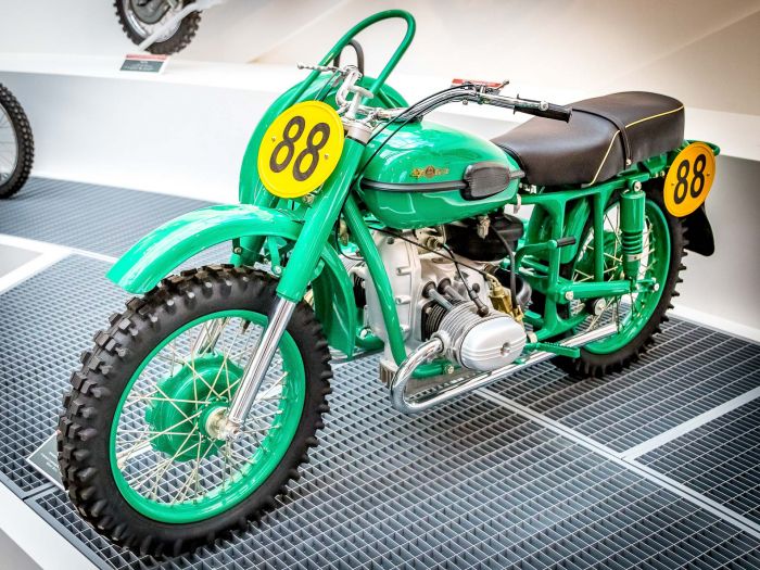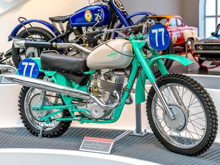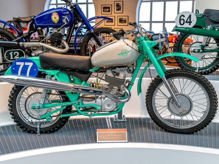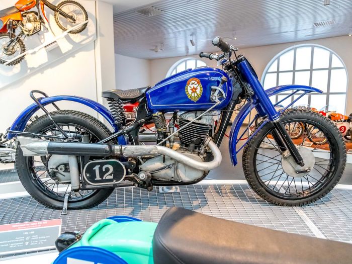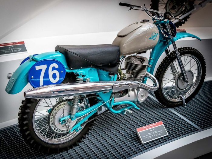 В СССР многодневные мотогонки проводились с середины 30-х годов, это были заезды на местности, дальностью до 500 километров. После Великой Отечественной войны мотоспорт получил мощный толчок к развитию, к 1950 году в СССР в год выпускалось более 123.000 мотоциклов. В 1956 году советские мотоциклисты впервые приняли участие в международных многодневных гонках в ФРГ. Сегодня предлагаю ознакомится с советскими мотоциклами для многодневных гонок и кроссовыми мотоциклами из экспозиции музейного комплекса УГМК.