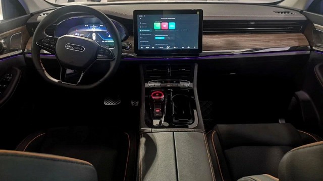 Почему тут при такой цене всего два «эйрбэга» – хороший вопрос создателям. При этом автомобиль получил светодиодную светотехнику, панорамную крышу, климат-контроль, медиасистему с экраном диагональю 12,8 дюйма и 8 динамиками, систему динамической стабилизации.