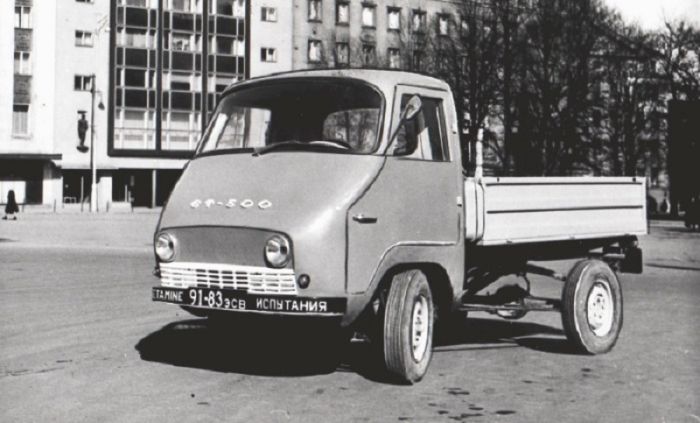 Первая машина была сконструирована еще в 1965 г. Уже само название говорит о грузоподъемности автомобиля – 500 килограммов. Главная его особенность – передний привод.