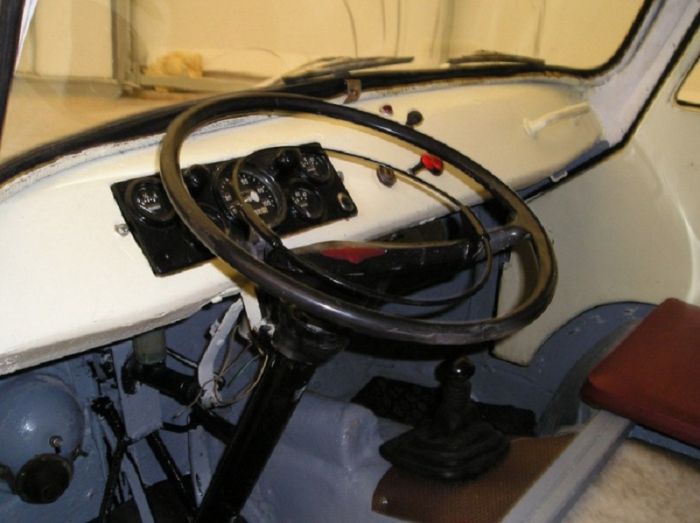 Кабина была рассчитана на водителя и пассажира и сделана из стеклопластика, популярного в то время материала. Во-первых, это существенная экономия традиционного металла. Во-вторых, масса автомобиля была существенно снижена. Кабина в общей сложности весила сорок килограммов, что очень мало. Чтобы ее сделать, требовалось менее пяти часов времени.