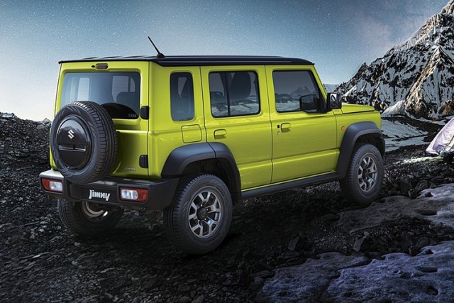 Габариты пятидверного Suzuki Jimny — 3985 х 1645 х 1730 мм, колесная база — 2590 мм. Для сравнения, длина и колесная база трехдверки — 3645 мм и 2250 мм.