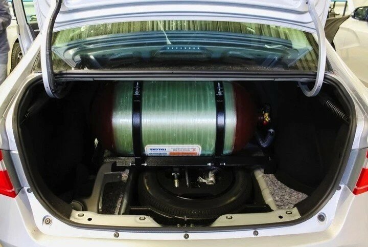 Машина работает на метане, когда газ заканчивается, питание автоматически переключается на бензин. С полной заправкой автомобиль пройдет около 1000 км. Высчитали, что с переходом на метан стоимость топлива снижается примерно в три раза.