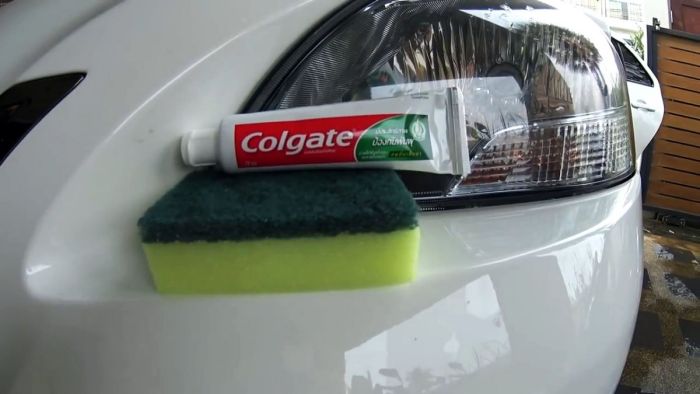 Большинство зубных паст содержат в своем составе мелкий образив, который отлично полирует поверхность. Будь-то метал, пластик и даже окрашенная поверхность как в нашем случае.