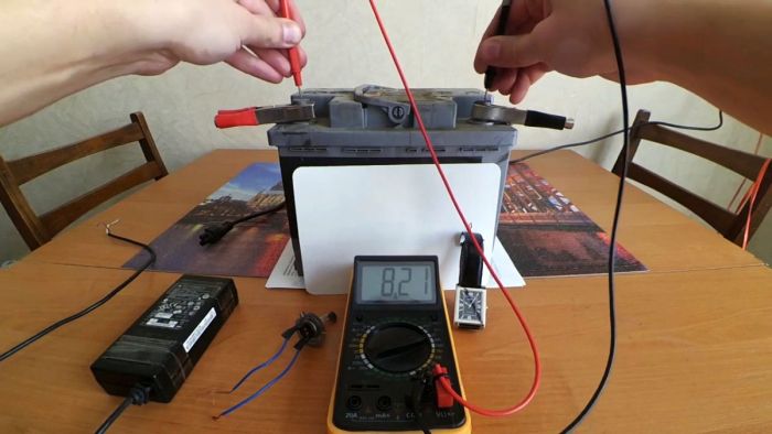 Включаем блок в сеть. Мультиметром проверяем процесс зарядки.