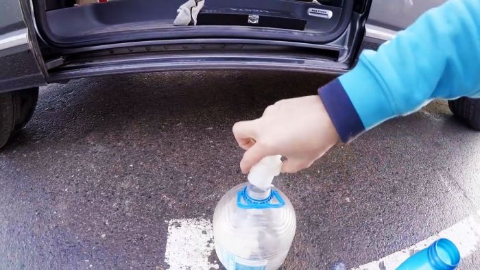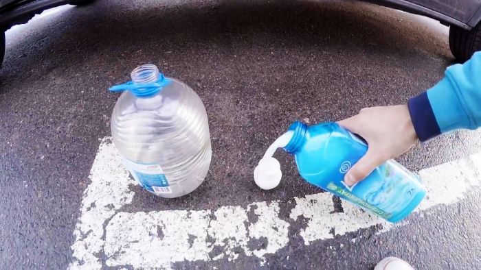 Нужно тщательно взболтать смесь и влить ее в бачок стеклоомывателя.