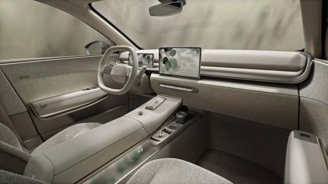 минимализм, бежевый текстиль, цифровая панель на 11 дюймов и мультимедиа с экраном на 13 дюймов. Для удобства оставили физические кнопки (ура, сенсорный ад отменяется).