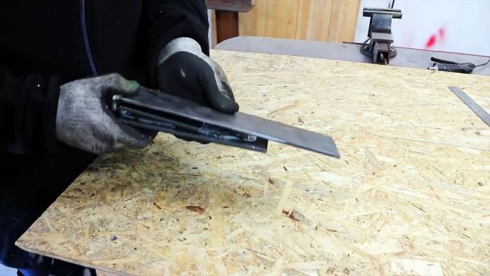 Привариваем вертикально и поперек к концу самого длинного отрезка, который будет в нашем самодельном башмаке выполнять функции основания или подошвы, наиболее короткий – ограничитель.