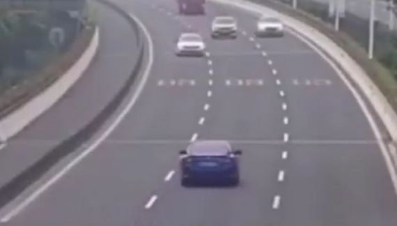 Едущий в левом ряду автомобиль скорой столкнулся с автохамом на шоссе.