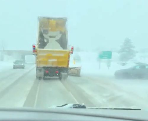 В грузовой автомобиль «Isuzu» со встречной машины прилетел кусок обледеневшего снега, который пробил лобовое стекло, разнес пол кабины и травмировал водителя.