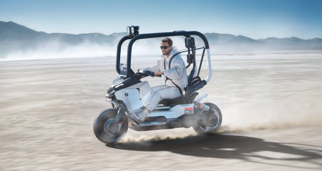 Концепт Motorrad Vision CE выглядит как транспорт из фантастики: металлический каркас, удобное кресло с ремнями безопасности и даже возможность ездить без шлема.