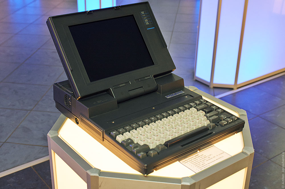Ноутбук начала 90-х Hitachi LA5040. Проц: Intel 80386SX 33 МГц. У меня был подобный гроб только Тошиба и 286-ой.