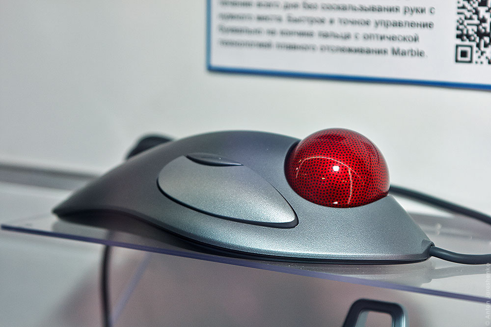 А вот еще забавная штука в музее. Хотя это далеко не история. Вот живете вы и просто не представляете другой жизни кроме как мышка. Большинство из вас вообще не представляет что может быть как-то еще. А я, например, не могу себе представить работу за компом с мышкой. Я пользуюсь трэкболом. Именно таким как на этой фотографии, это самый лучший и удобный трэкбол в мире. Забавно смотреть на знакомых которые приходят в гости и ловят клин. А я не знаю ничего удобнее, мне не удобно работать мышкой.