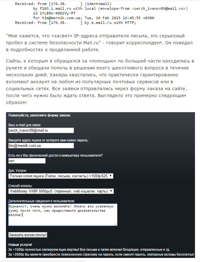 Что будет если заказать взлом своего e-mail 19/02/2015 22:36 пяти разным "хакерам" Главная / Статьи / Компьютеры +10 Admin 8 2 416