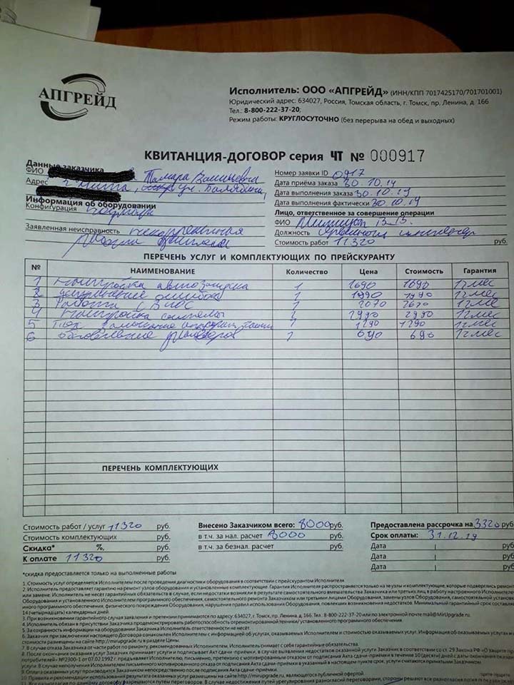 Понятное дело, что вернуть изображение в норму можно было бы одним нажатием на те три заветные кнопки. Но это слишком просто, на этом не заработаешь. Поэтому мастер настроил автозапуск, устранил ошибки (вот оно!), провел работу с BIOS, настроил систему, сделал еще что-то и обновил драйвера. Итого почти 11 320 руб, но зато с рассрочкой платежа.