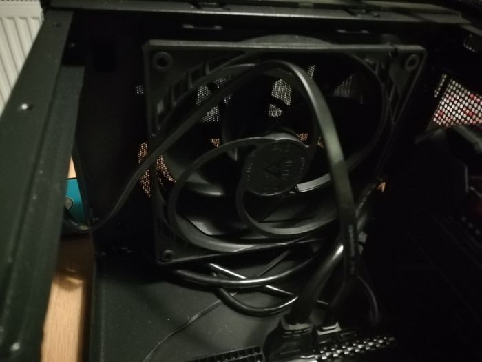 Отдельного абзаца требует описание системы охлаждения. Изначально, процессор был куплен в BOX версии, это даёт 3 года гарантии и вентилятор в комплекте. Так вот его можно выкинуть сразу – шумит жутко, охлаждает плохо. Заменил его на почти бесшумный ID-COOLING IS-40X, но так как он будет находиться под блоком питания и гонять горячий воздух, то дополнил конструкцию большим бесшумным Arctic P14 PWM 140x140мм на гидродинамическом подшипнике. Все вентиляторы 4пин, т.е. можно настраивать скорость вращения в зависимости от температуры.