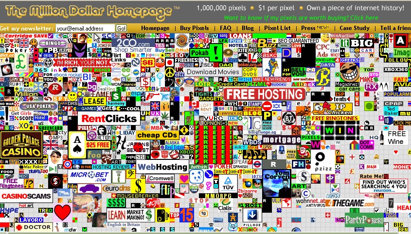 9. В 2005 году студент из Англии сделал веб-страницу размером в 1 миллион пикселей и выставил место для продажи по цене 1 доллар за пиксель. Он сделал это, чтобы заплатить за колледж, и он добился успеха, распродав вме места менее чем за 6 месяцев.