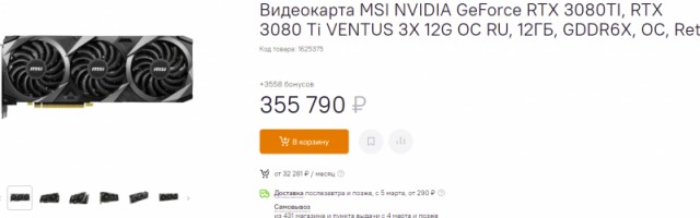 За 355 790 рублей можно отхватить GeForce RTX 3080 Ti. Ещё неделю назад видеокарта стоила ровно в 2 раза дешевле, ну а предпосылок, продавать её за столь неразумную сумму просто нет. Неясно, кто вообще будет столько платить за недофлагман 4000 долларов. Вы бы стали?