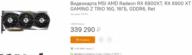 Radeon RX 6900 XT стоит 339 290 рублей. Неясно, на каком основании была выбрана такая спорная цена. Майнить на этой видеокарте нельзя, а покупать для игр видеокарту за 3500 долларов с шильдиком AMD – просто несерьёзно. Мало ли, вдруг начнут глючить драйверы или к вам придёт в гости друг и услышит жужжание красных кулеров в системном блоке. Срамота.