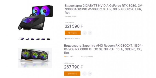 В этом случае остаётся только одно: GeForce RTX 3080 за 321 790 рублей. А помните, как неделю назад за неё просили 138 000 рублей? Сегодня нас интересует только один вопрос: когда цены вернутся в норму? Пожалуй, наиболее бюджетной флагманской видеокартой является Radeon RX 6800 XT. За каких-то 267 790 рублей можно получить производительность более дорогой GeForce RTX 3080. Кстати, вы заметили, что у ребят из Ситилинк какой-то фетиш на цифру 790. С чем это может быть связано?