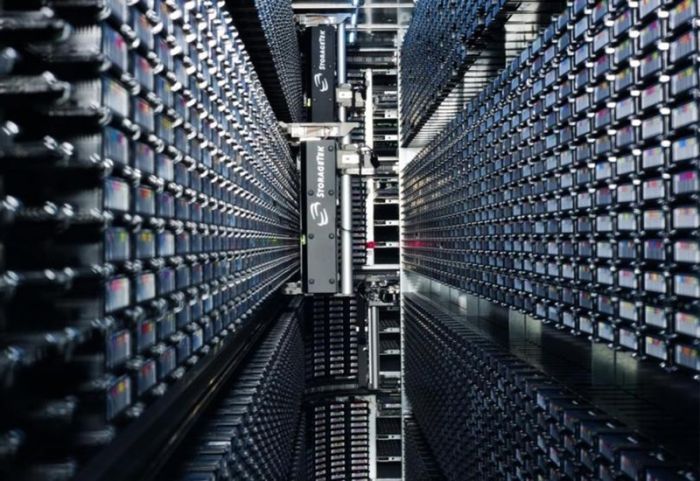 Более того, ленточные хранилища, устанавливаемые в дата-центрах, автоматизированы. Масштабные роботизированные библиотеки могут занимать целый машинный зал. Особые манипуляторы выполняют автоматический поиск необходимых картриджей и оперативно загружают их в считывающие устройства.