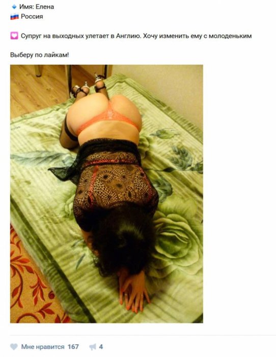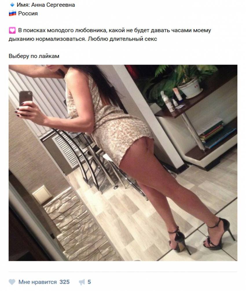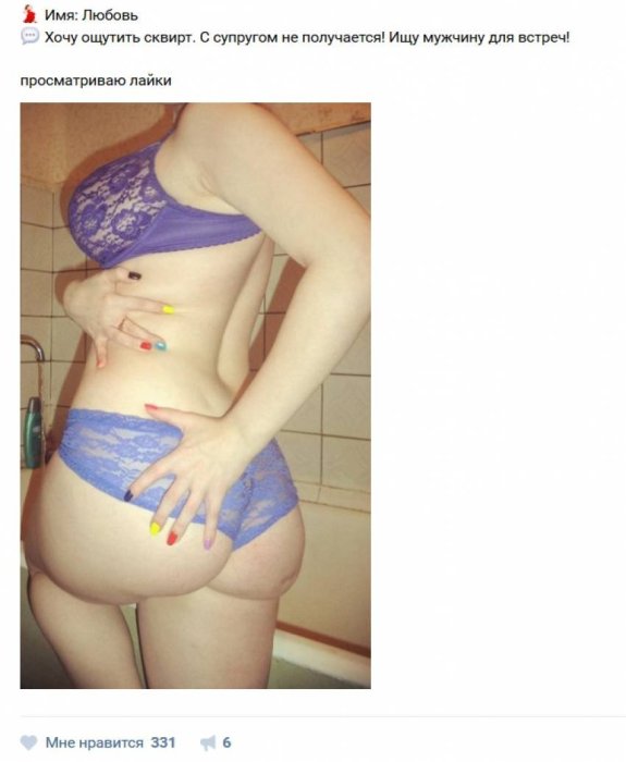 Сегодня мы приготовили для Вас сборник картинок под общим названием «Жещнины хотят секса» 20 (фото). Вы сможете увидеть сколько же различных дам страстно желают заняться сексом с молодыми парнями, о чем без особого стеснения или же неудобства пишут в социальных сетях.