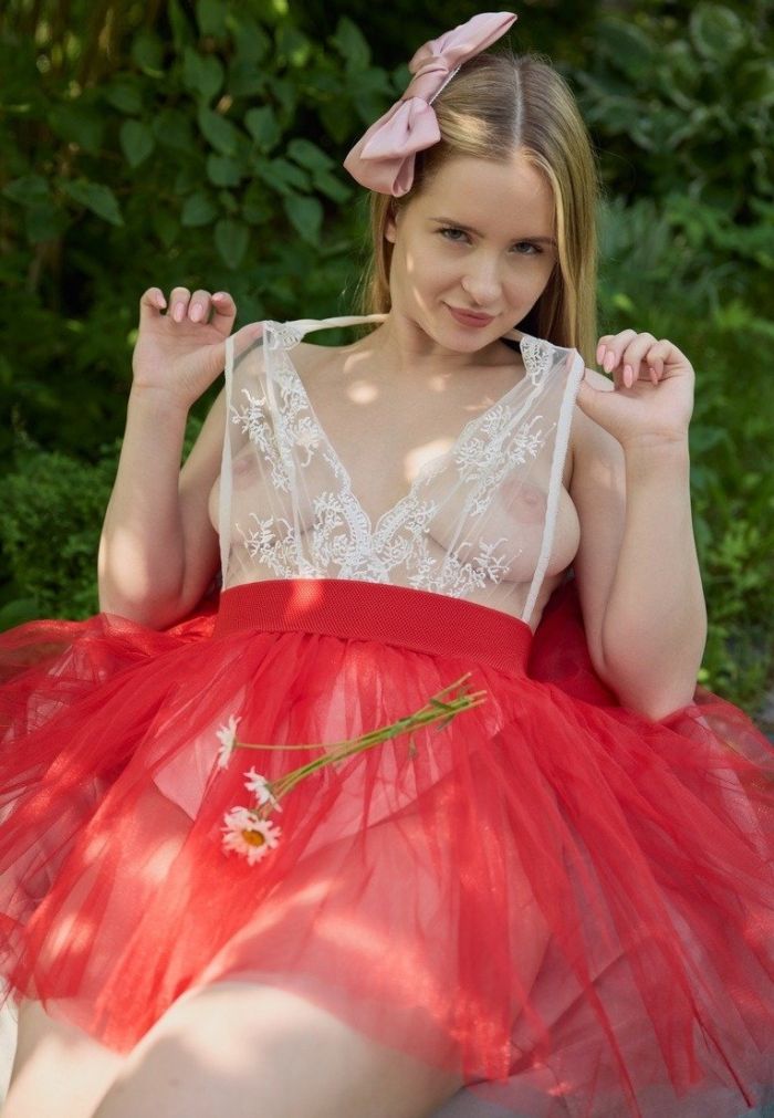 Кокетливо засвечивая через прозрачное платье свою сексуальную грудь, развратная девушка с натуральными формами постепенно разделась до гола в зеленом саду. Удобно расположившись в мягком кресле, бесстыжая красотка во всей красе раскрывает свои прелести крупным планом.