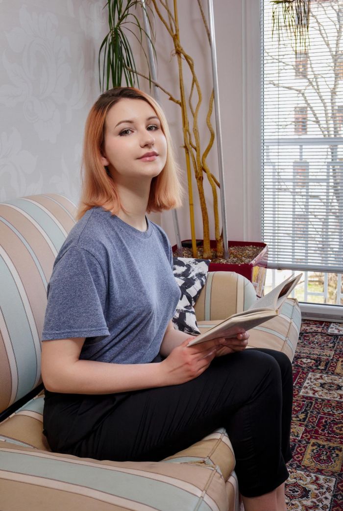 Уверенно и дерзко снимая с себя одежду перед, аппетитная молодая красотка постепенно разделась до гола в комнатке и, развалившись на диване с широко раздвинутыми ногами, крупным планом показала нам свои прелести.