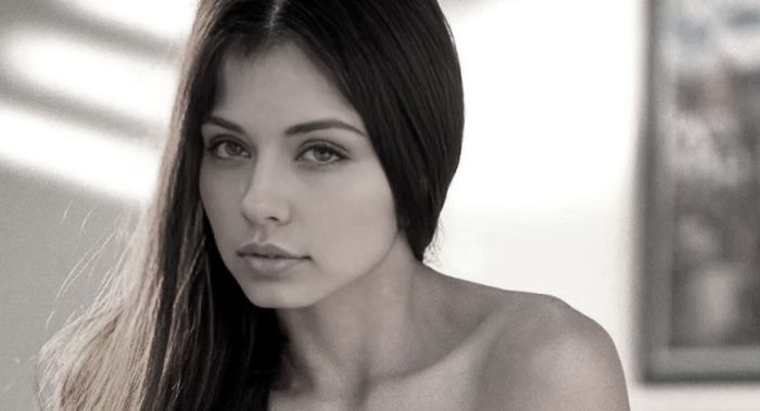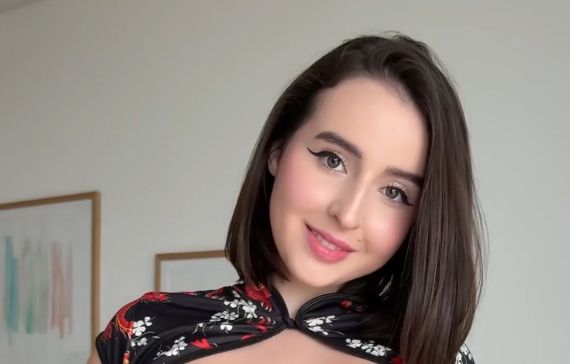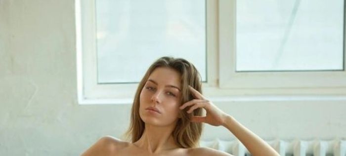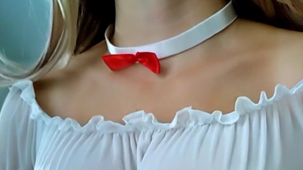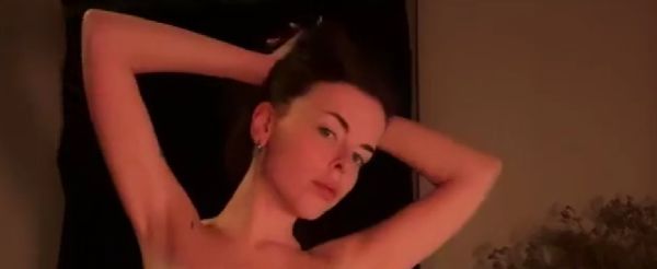 Игривая молодая девушка в шелковом халате возбуждающе дразнит нас натуральными упругими грудями, а потом и вовсе раздевается до гола и, забравшись на стул с широко раздвинутыми ногами, во всей красе демонстрирует нам ухоженные прелести.