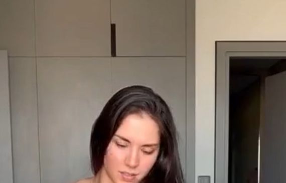 Быстро стянув с себя майку с трусиками и развалившись на диване с широко раздвинутыми ногами, миниатюрная голая брюнетка с натуральной грудью показала нам свое тело в разных ракурсах.