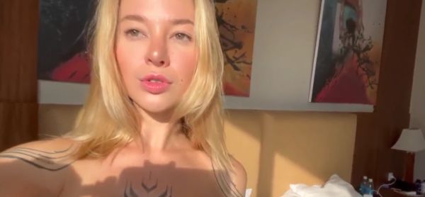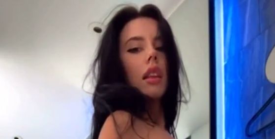Возбуждающе медленно проводя руками по своей нежной коже и неторопливо стягивая нижнее белье, горячая девушка с сексуальной грудью оголила для всех загорелое стройное тело и, умело демонстрируя нам свои прелести.