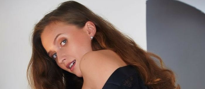 Страстно сорвав с себя сексуальное белье, красивая девушка с пухлыми губами во всей красе показала свои упругие груди и, без перерыва извиваясь на кровати в разных позах, мельком засвечивает ухоженные прелести.