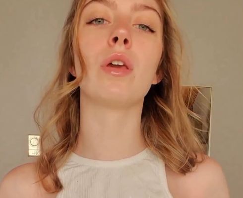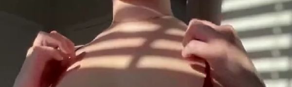 Быстро оголив своим аккуратные груди, развратная горячая блондинка сняла с себя красные колготки и возбуждающе прогнулась на кровати в позе раком, похотливо выпячивая вперед свою упругую попку и игриво теребя пальцами раскрытую между ног сочную киску.
