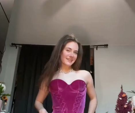 Уверенно красуясь и неторопливо стягивая с себя длинное платье, сексуальная девушка с натуральной грудь и аппетитной голой попкой развалилась в кресле с широко раскрытыми ножками в самых выгодных ракурсов хвастается своими ухоженными прелестями.