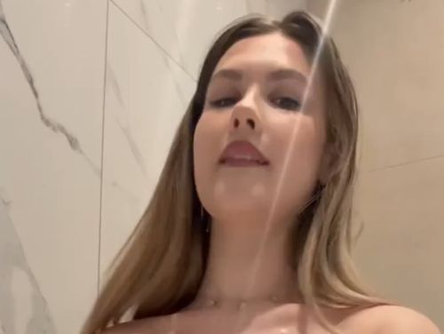 Бесстыже светя своими прелестями через распахнутую рубашку и медленно стянув ее, голая девушка сексуальной грудью и острыми крепкими сосками соблазнительно раскрывает на диване свои ухоженные прелести.