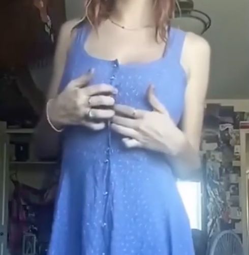 Нетерпеливо и страстно сорвав с себя откровенный наряд и развалившись на диванчике с широко раскрытой промежностью, белобрысая красотка с натуральными крепкими титьками оголила свои прелести и показа их крупным планом.