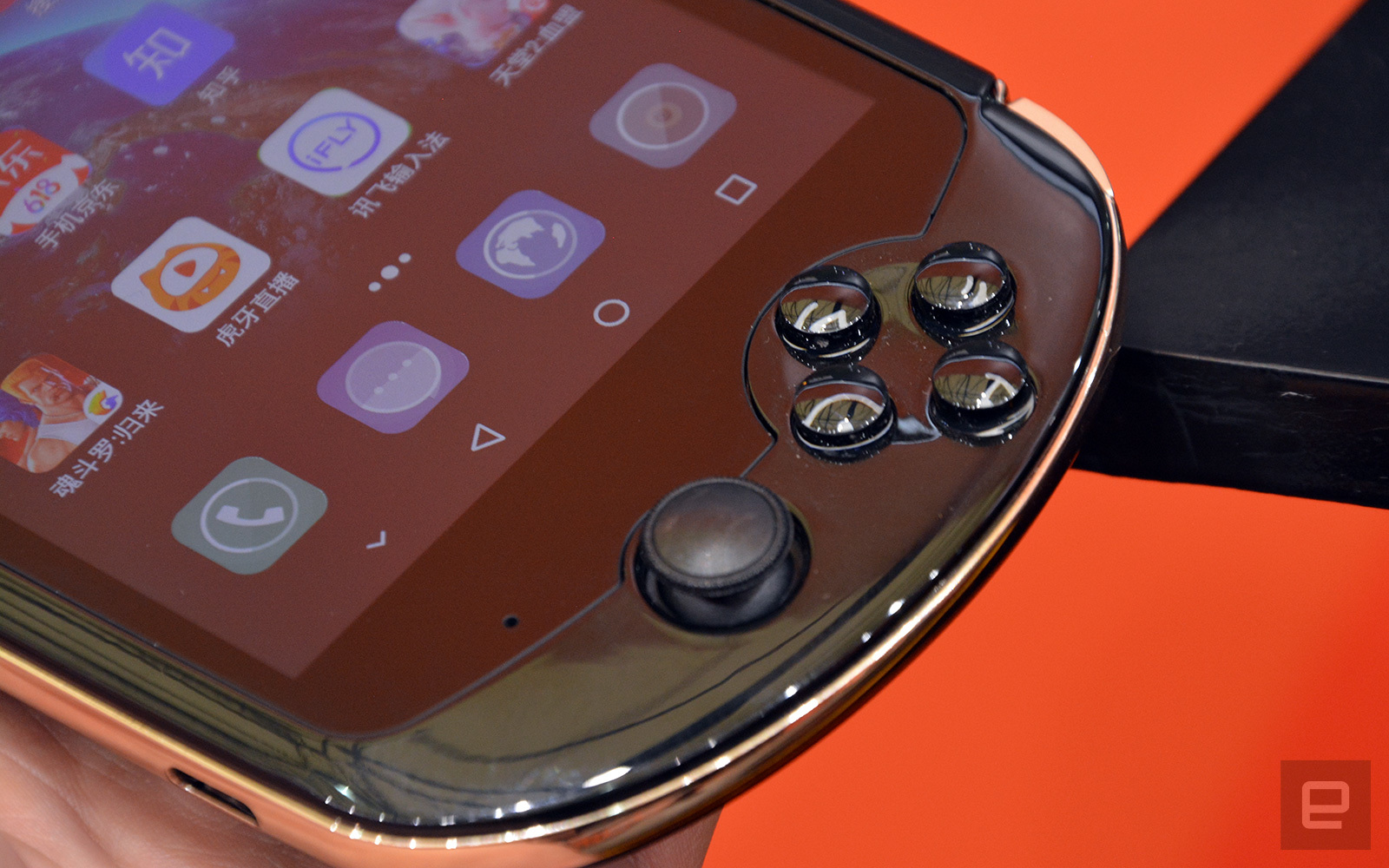 Да, создавая гаджет авторы содрали всё лучше с PS Vita, поставили операционную систему Android и показали публике. Огромный, толстый и тяжелый игрофон-фаблет неожиданно тепло приняла публика. Во-первых, благодаря вполне приемлемой цене в 1899 юаней (около $280). Во-вторых, благодаря приличной начинке: сенсорный экран 1080р с диагональю 6 дюймов, 6 Гб ОЗУ, 64 Гб памяти для приложений, стерео-звук, поддержка двух SIM и настоящий бегемот-батарея – съемная на 6,000 мАч. Процессор – десятиядерный MediaTek Helio X20. Плюс две камеры, на 5 и 16 мегапикселей.