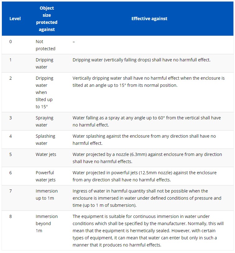 - Второе число, какая степень защиты от попадания воды и других жидкостей. Например если вторая цифра равна 8 или 9 - значит оболочка обеспечивает возможность полного погружения в воду, без каких либо последствий. В то время как цифра 7, указывает на возможность легкого попадания влаги.