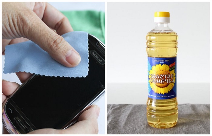 Последним пунктом в нашем списке средств для уничтожения дефектов является растительное масло. Можно брать абсолютно любое: оливковое, кукурузное, кунжутное, растительное и так далее. Масло за счет своей фактуры на некоторое время уберет царапины, но не факт, что эффект будет продолжительным. Только не переборщите с количеством масла – для ваших целей понадобится одна капля. Если использовать больше, то оно может попасть внутрь девайса и нарушить его работоспособность. Масло нужно растереть по экрану гаджета и подождать положительного результата.