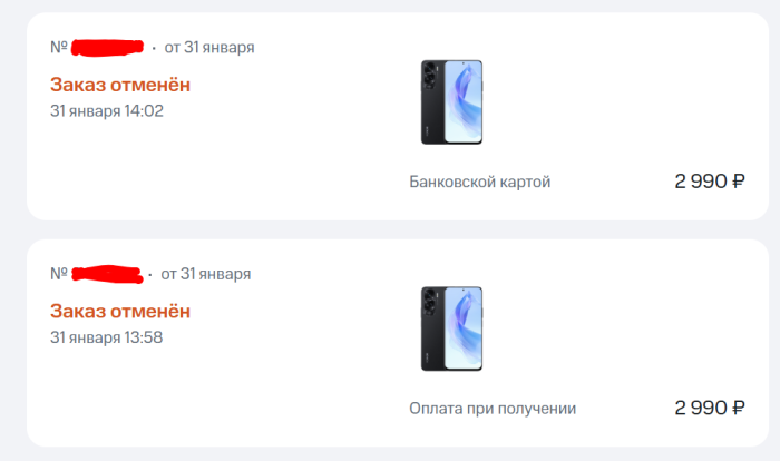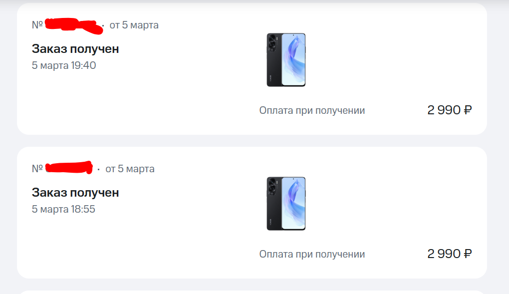📱 В феврале я нашёл на сайте МТС Honor 90 Lite 8/256 за… 2990 ₽ вместо обычных 23 990 ₽. Сделал сразу два заказа: один оплатил онлайн с самовывозом, второй выбрал «при получении». Через полчаса пришло СМС: «ваши заказы готовы».![]()