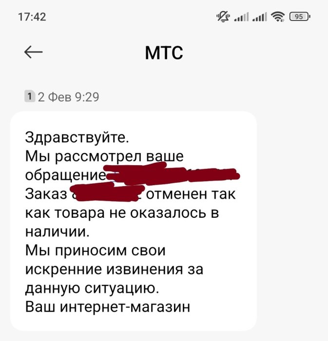 — по одному заказу «товар отсутствует»;