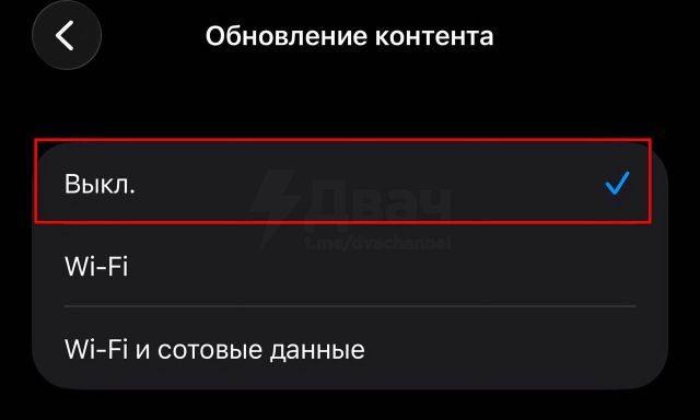 2. В основных настройках найдите пункт «Обновление контента» и полностью выключите его;