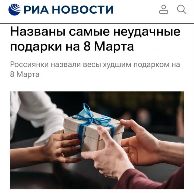 Опрос показал, какие подарки на 8 Марта женщины считают самыми неудачными. Лидерами антирейтинга стали напольные весы, а также одежда и косметика, купленные без предварительного обсуждения.
