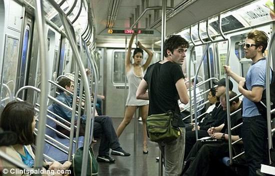 Во время движения одна девушка стала раздеваться, а фотограф снимал ее на фотокамеру.