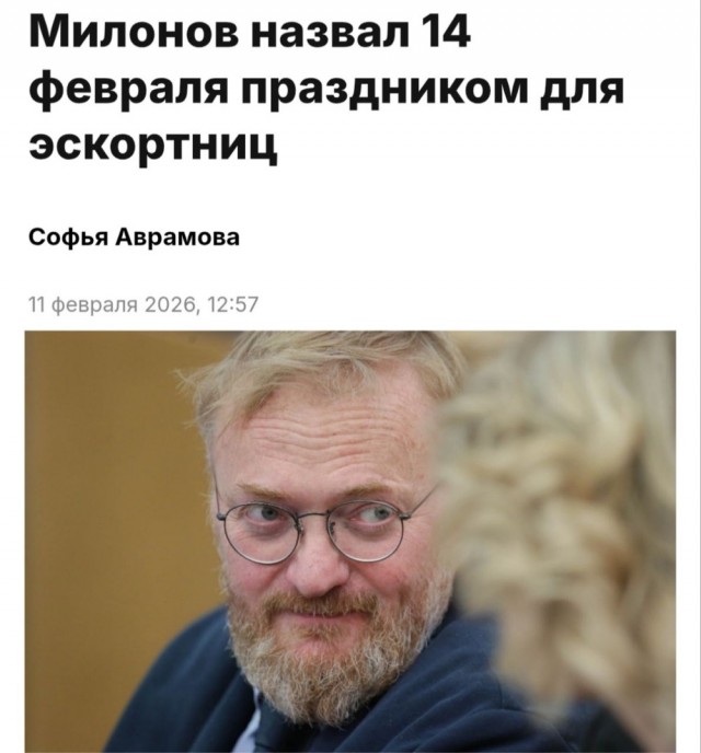 «Эскортницы пусть отмечают»: Виталий Милонов раскритиковал 14 февраля 💔