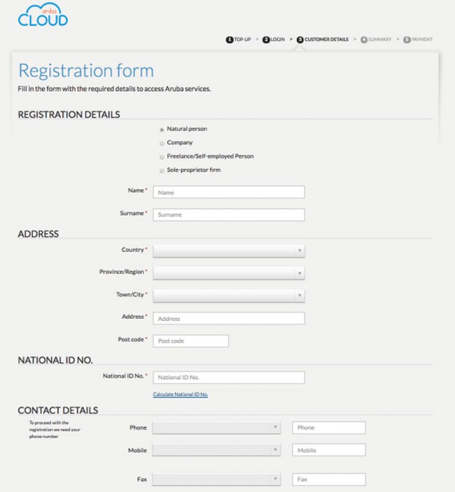 Регистрируемся на ArubaCloud