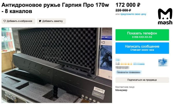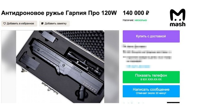 Работают такие ружья за счёт технологии подавления сигнала. Человек просто наводит прицел на дрон, нажимает кнопку, и объект теряет связь с оператором, а потом падает. Действует довольно быстро — через две-три секунды. Этими особенностями и решили воспользоваться очень предприимчивые люди. После недавних событий выкатили кучу объявлений о продаже.