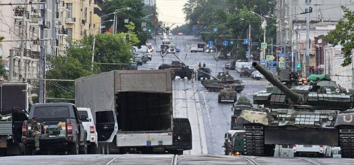 На улицах силы группы "Вагнер", в отдельных местах встречается военная техника, в том числе танки и автомобили военной полиции.