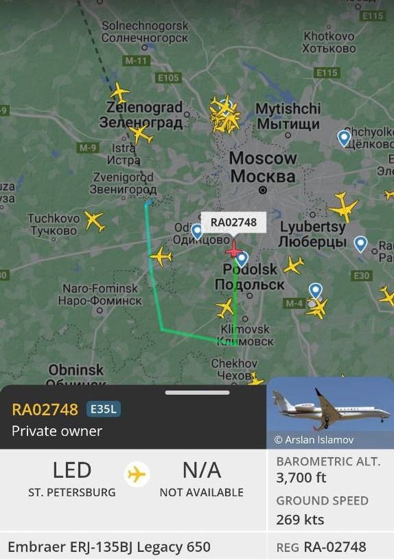 UPD3 В тот момент, когда взорвался самолет Пригожина, в небе находился второй его борт. Он сейчас кружит над Москвой